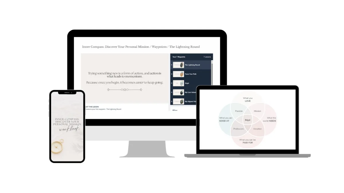 Inner Compass: Discover Your Personal Mission is an exclusive online step-by-step course designed to help you cut through the noise and reconnect with what matters most.